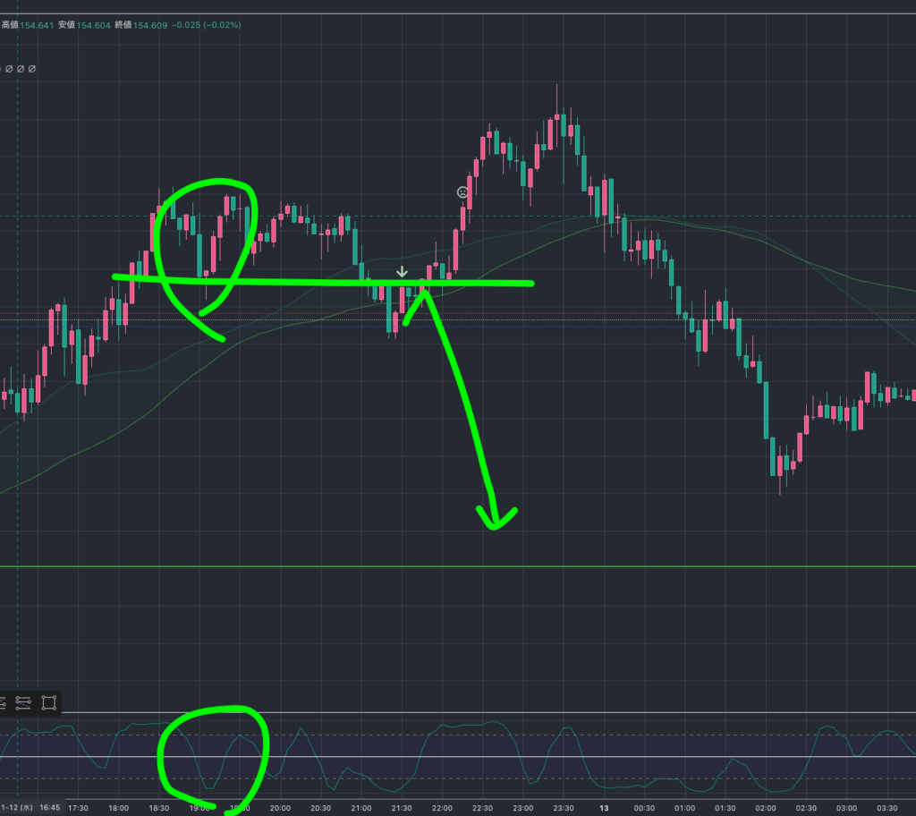 昨日エントリーはルール外でした。売りでエントリーした理由はRCIを見すぎたからです。RCIを意識しすぎて事故しました。