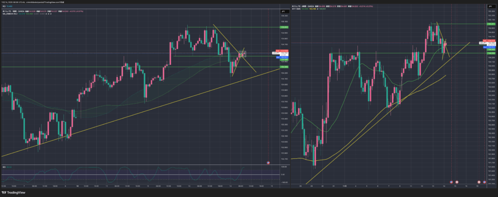 こういう時1分足だなという気づきを書いて、来週からできるようにしておきます。1時間が狭い幅でレンジであったり5分足がしづらい時は、だいたい1分足の方がやりやすいですね。