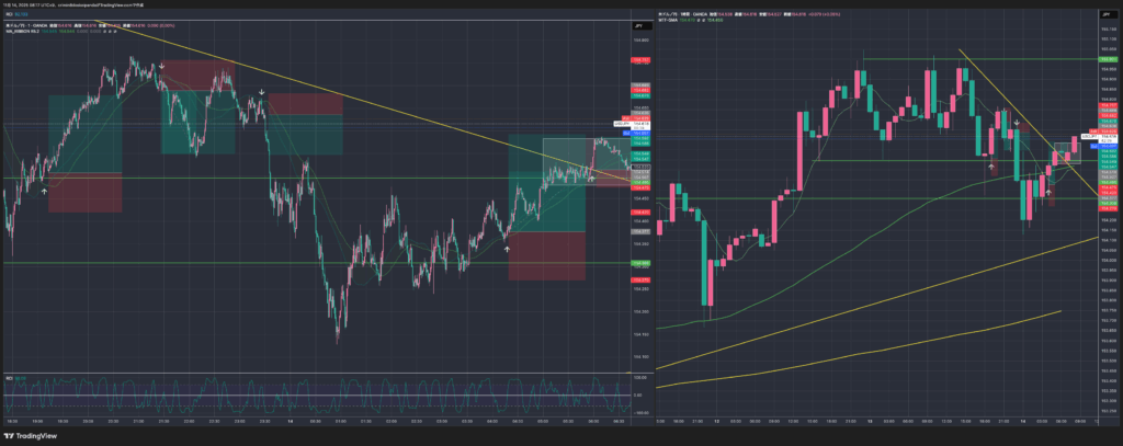 2025/10/4に更新しました。 トレードの戦術と戦略 項目ルールメインの時間軸5分足(5m)通貨ドル円(USD/JPY)戦略損小利大を狙う(2:1くらい)(そんなに大きくは狙わない…