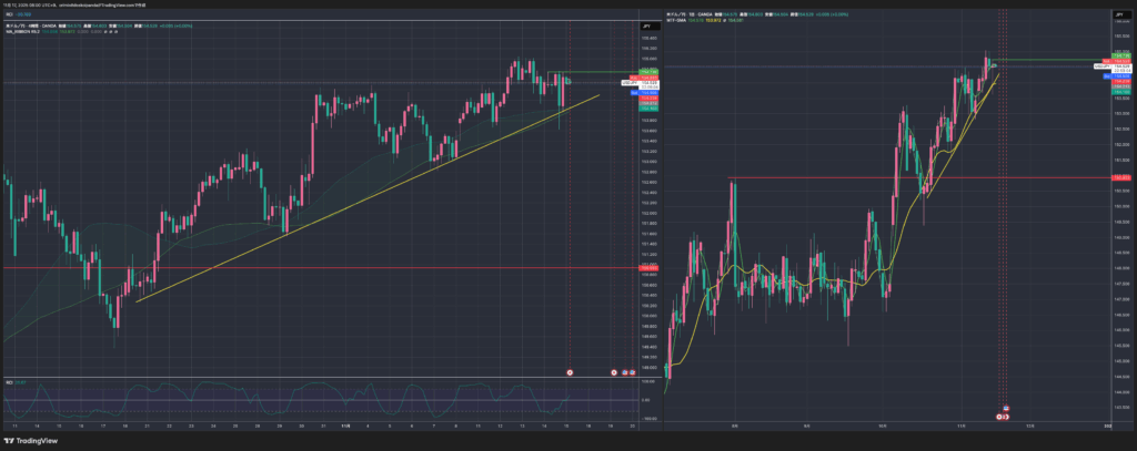 左が4時間、右が日足です。