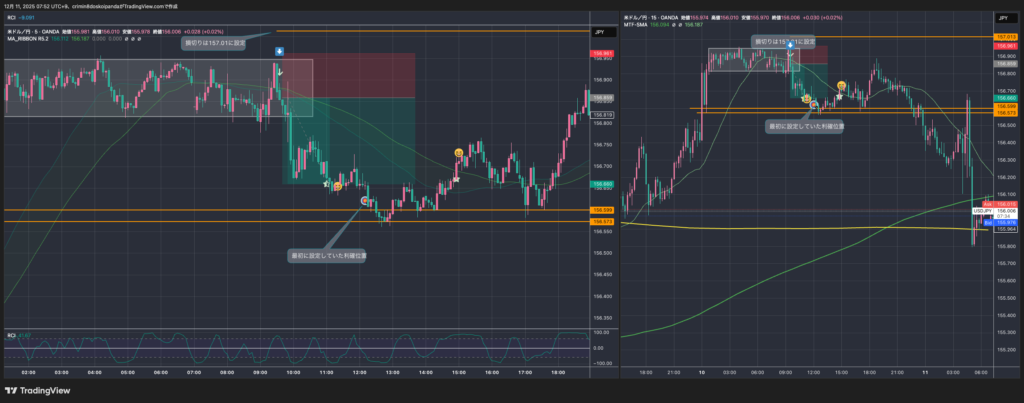 値動きに翻弄されてしまって、設定していた利確位置よりも上で利確しちゃいましたね。