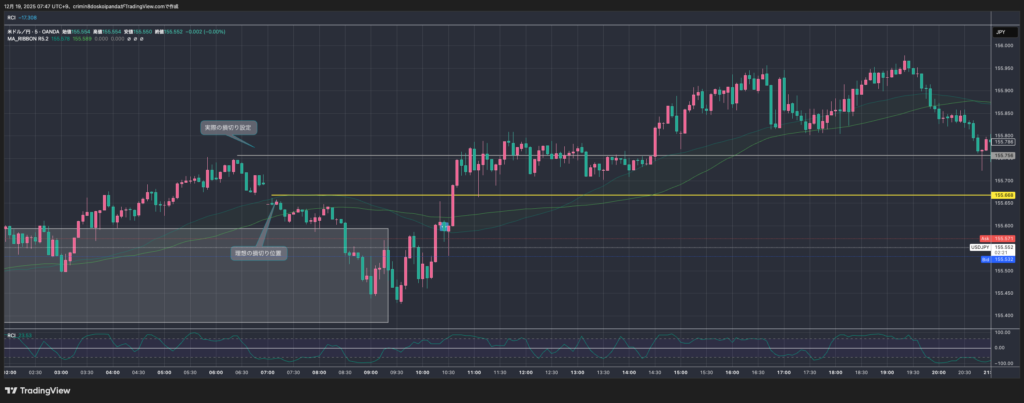 昨日の夜の予定はCPIなの忘れてたので逃げました。これはしょうがないですが、朝のトレードを振り返ります。損切り位置がよくなかったです。