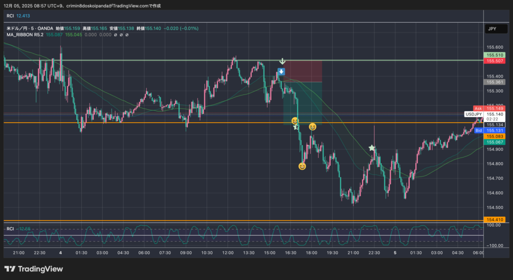 エントリーはうまくできました。ダウンに転換した部分を確実に仕留められました!非常にOK!
