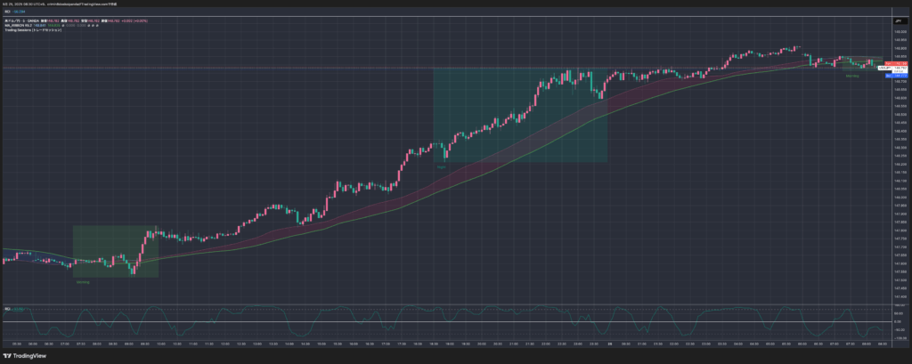 - 緑の薄い時間が、自分が業務外でトレードに集中できる時間