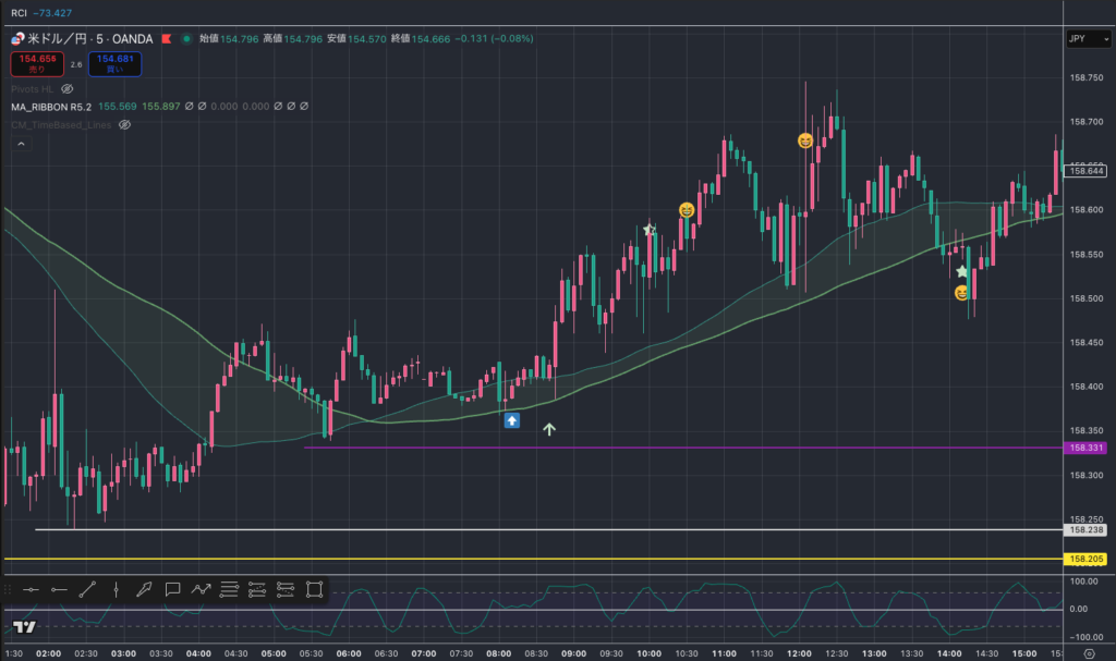 エントリーと利確は問題ないのですが、損切りラインとロット数がNGでしたね。