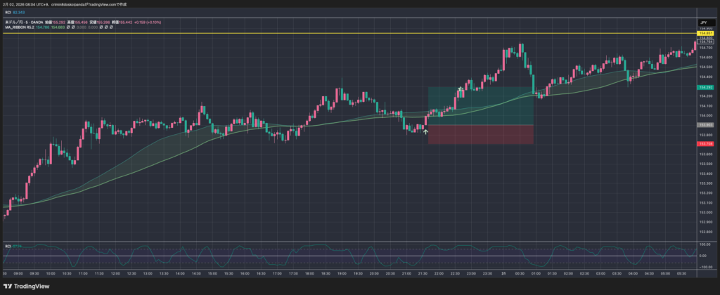 FOMC後すぐや急降下あとであっても様子見は必要でしたね。1時間見過ぎなので、5分だけを意識してトレードしていきます。