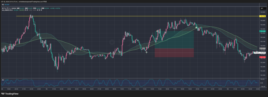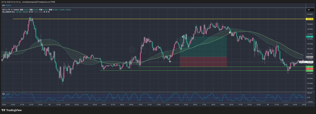 2026/2/16に更新しました。太字赤マーカー部分が変更箇所です。 過去のはこちら トレードの戦術と戦略 項目ルールメインの時間軸5分足(5m)通貨ドル円(USD/JPY)戦略損小…