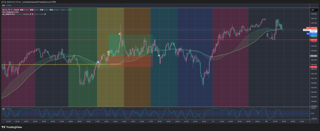 2026/2/16に更新しました。太字赤マーカー部分が変更箇所です。 過去のはこちら トレードの戦術と戦略 項目ルールメインの時間軸5分足(5m)通貨ドル円(USD/JPY)戦略損小…