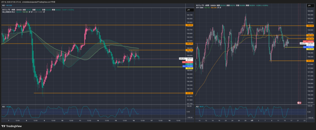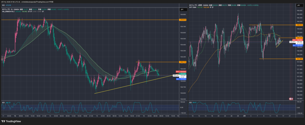 今15分レベルのレンジに入っちゃったのでやりにくいですね。大きな相場感で狙います。