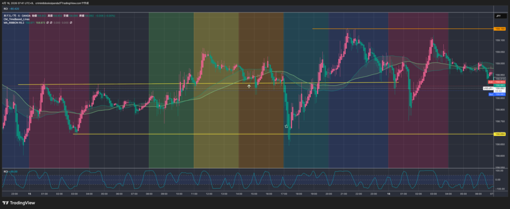 2026/3/26に更新しました。 トレードの戦術と戦略 項目ルール詳細メインの時間軸5分足(5m)通貨ドル円(USD/JPY)戦略損小利大を狙う(2:1くらい)理想のエントリーから2:…