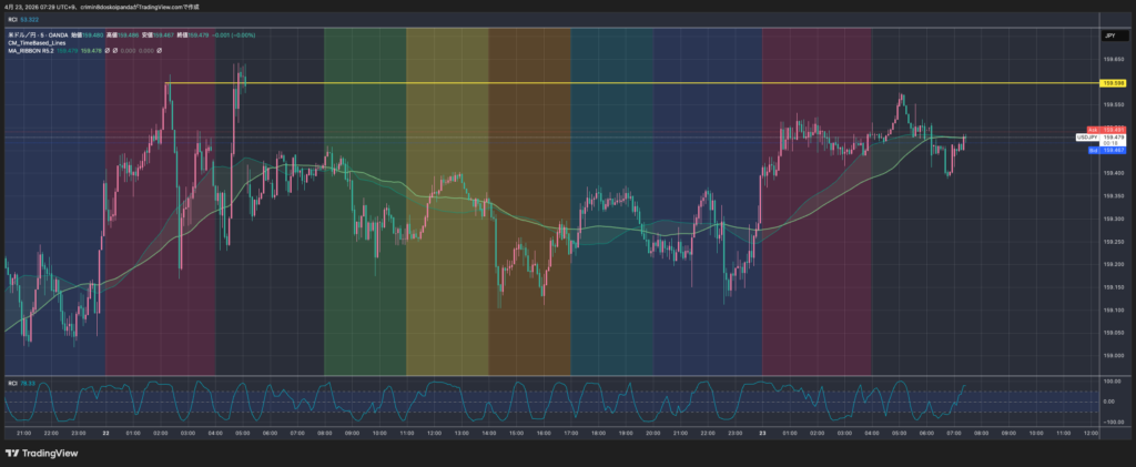 2026/3/26に更新しました。 トレードの戦術と戦略 項目ルール詳細メインの時間軸5分足(5m)通貨ドル円(USD/JPY)戦略損小利大を狙う(2:1くらい)理想のエントリーから2:…