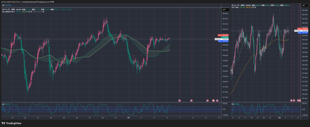 2026/3/26に更新しました。 トレードの戦術と戦略 項目ルール詳細メインの時間軸5分足(5m)通貨ドル円(USD/JPY)戦略損小利大を狙う(2:1くらい)理想のエントリーから2:…