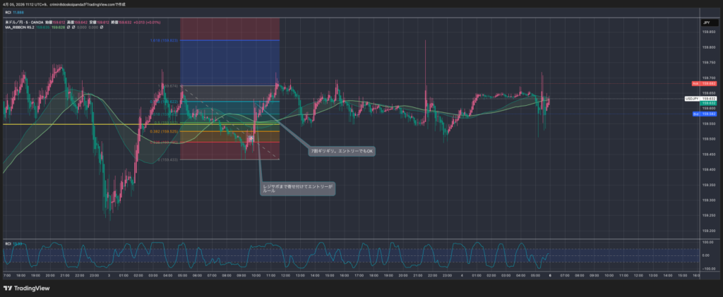結果は検証通りで、トレードしたこと自体は問題ないのですが、エントリー箇所が寄せ付けてなかったです。