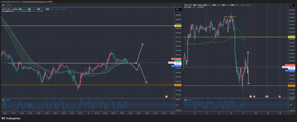 2026/3/26に更新しました。 トレードの戦術と戦略 項目ルール詳細メインの時間軸5分足(5m)通貨ドル円(USD/JPY)戦略損小利大を狙う(2:1くらい)理想のエントリーから2:…